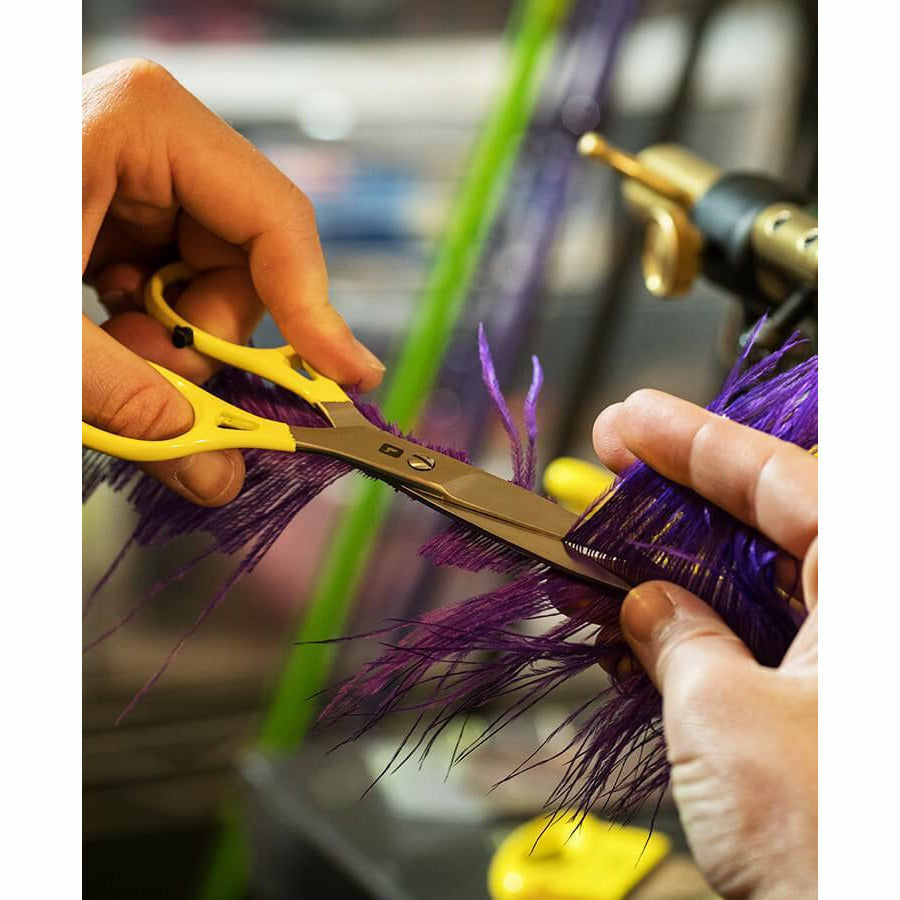 The broad blades offer a stouter feel and increased stability, regardless of what you're cutting. The oversized handles are ergonomically designed to accommodate the tyers who got in the hand line twice, and the blades are honed to perfection right here in the USA. These are an excellent pair of scissors for working with big materials and tying big flies.