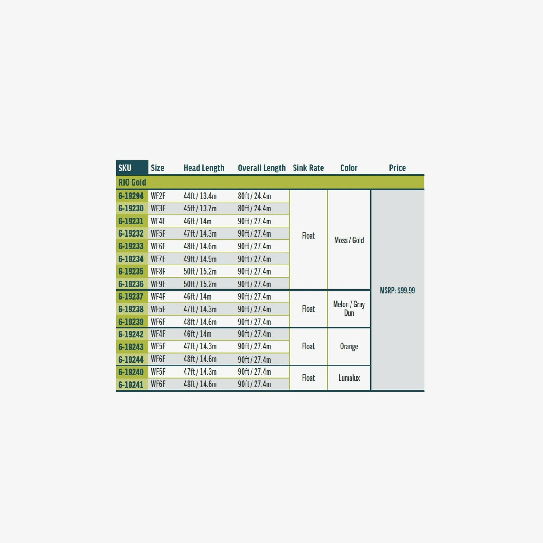We have enhanced the performance of this wonderful trout line by building it with SlickCast - RIO's proprietary coating technology. SlickCast creates the slickest, most durable fly lines on the market. Lab tests show that lines built with SlickCast have the least amount of friction ever measured in a fly line. In addition, the line features MaxFloat Tip Technology, RIO's proprietary tip coating formula that floats more than twice as high as regular line tips, without any increase in diameter.