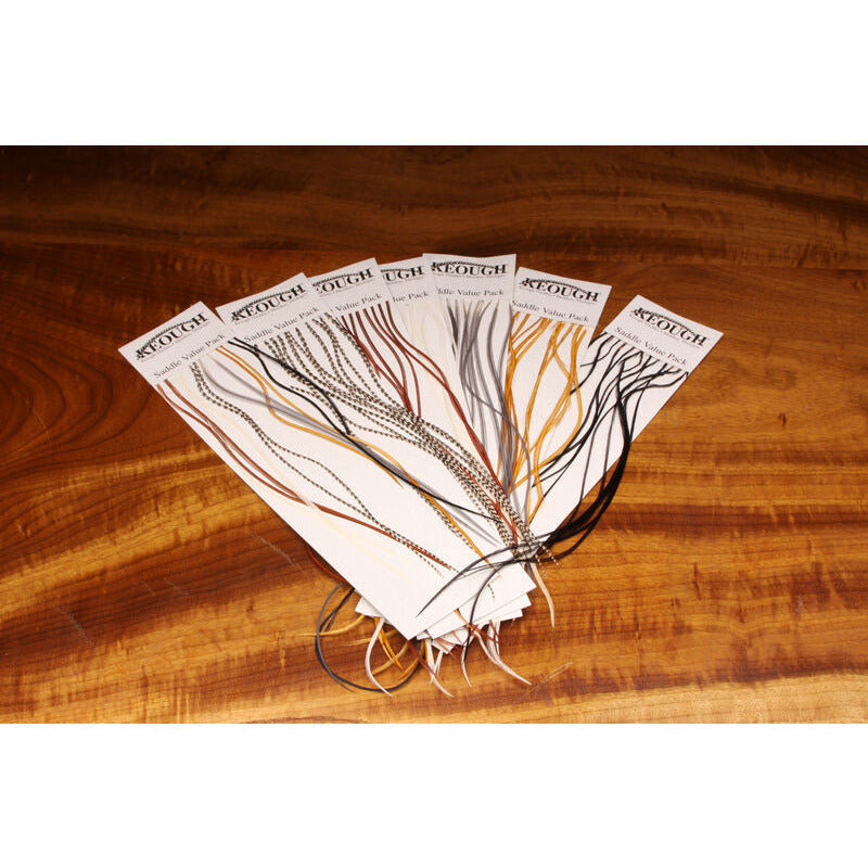 Don't want to buy an entire cape or saddle? This is the perfect solution including about a dozen of the best dry fly feathers from a saddle.